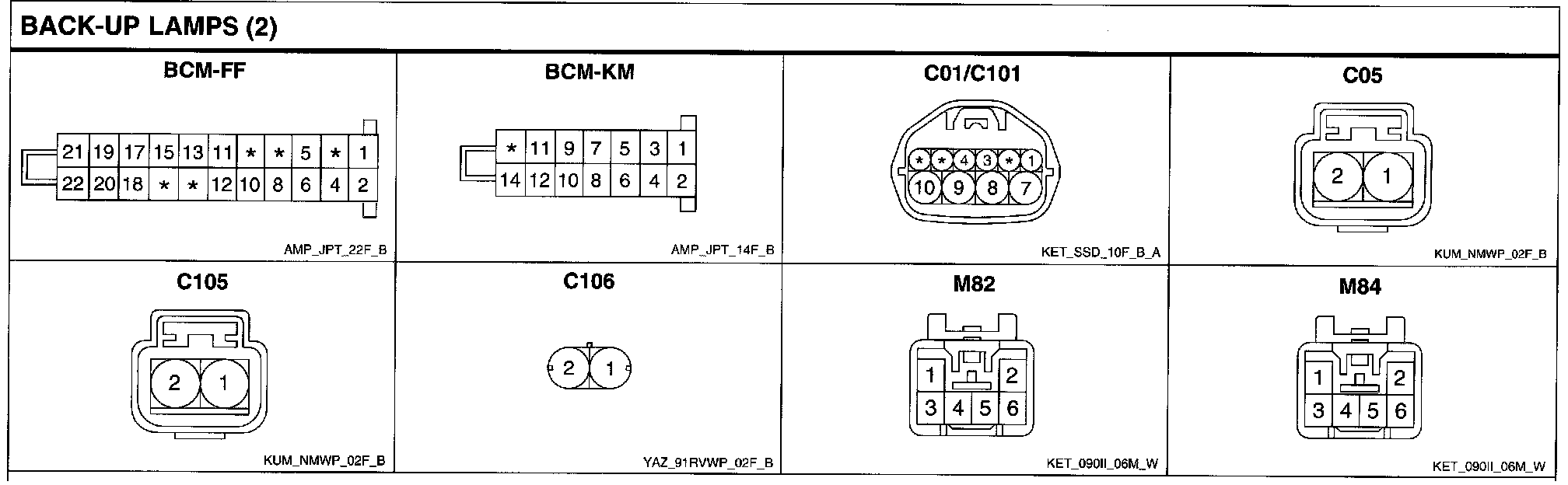 Connector Views: The Connector Pin Out Views for connectors shown on these diagrams can be found on the Connector Pin Out images that follow most sets of system diagrams.