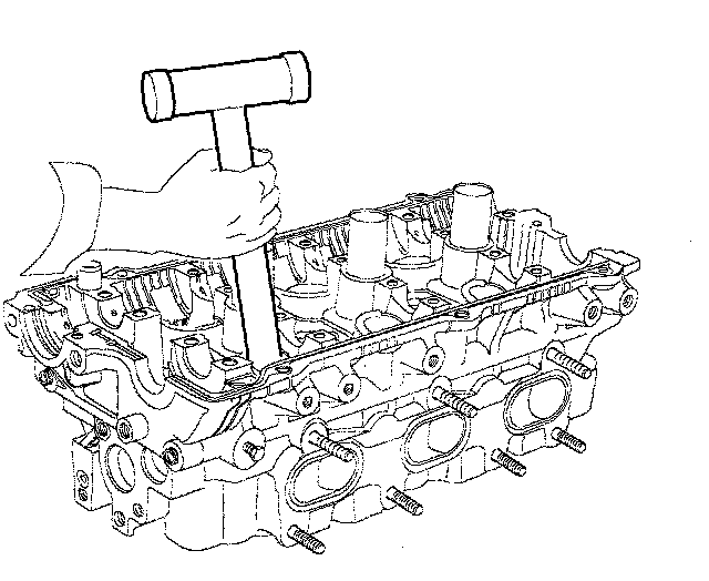 5) Lightly tap the end of each valve stem two or three times wit the wooden handle of a hammer to ensure proper seating of the valve and retainer lock.