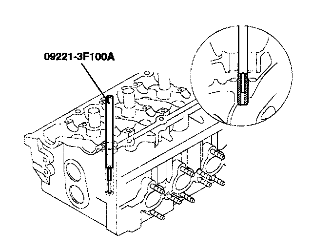 1. Using the SST (09221-3F100A), withdraw the old valve guide toward the bottom of cylinder head.