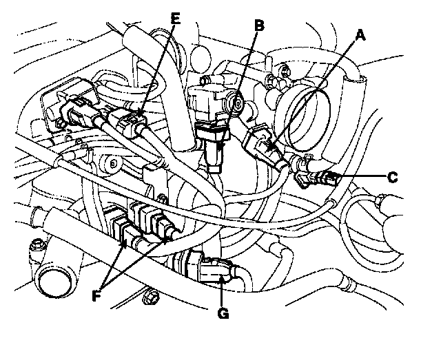 7. Remove the engine wire harness connectors and wire harness clamps from the cylinder head and the intake manifold.