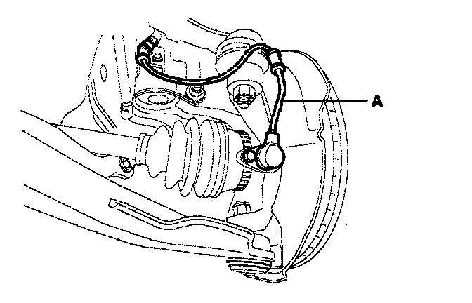 21. Disconnect the ABS wheel speed sensor (A) from both front knuckles.