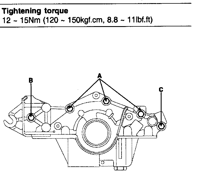 Tightening torque 12 - 15 Nm (1120 - 150 kgf-cm, 8.8 - 11 ft. lbs.)