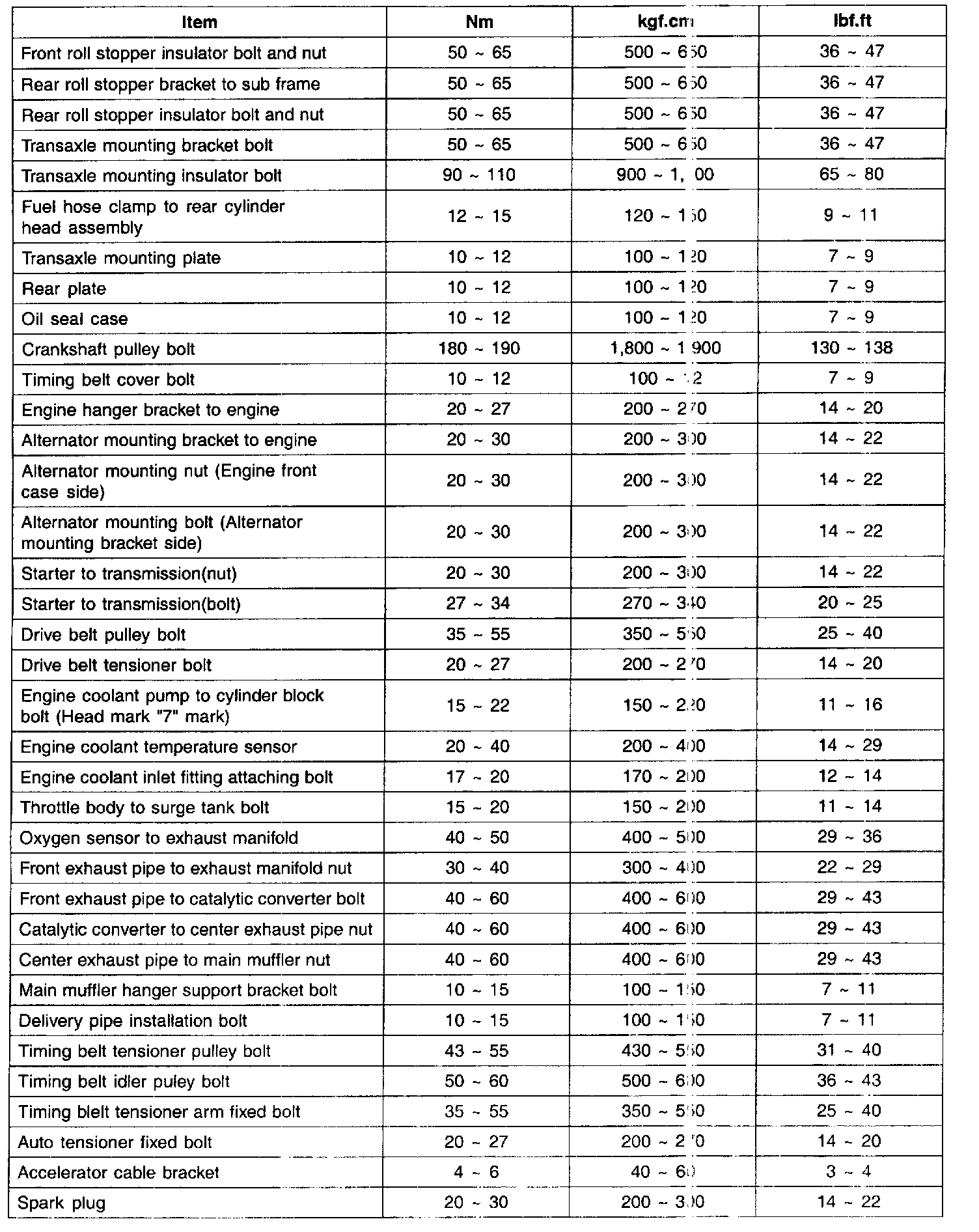 Crankshaft pulley bolt 180 - 190 Nm (1800 - 1900 kgf-cm, 130 - 138 ft. lbs.)