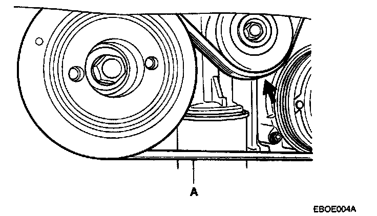 2. Loosen the drive belt tension adjusting bolt, then remove the drive belt(A).