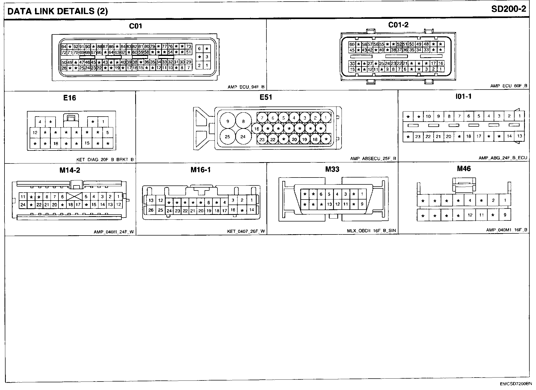 Data Link Details Connector Pin Outs: