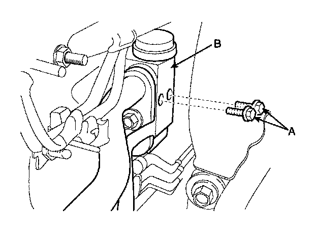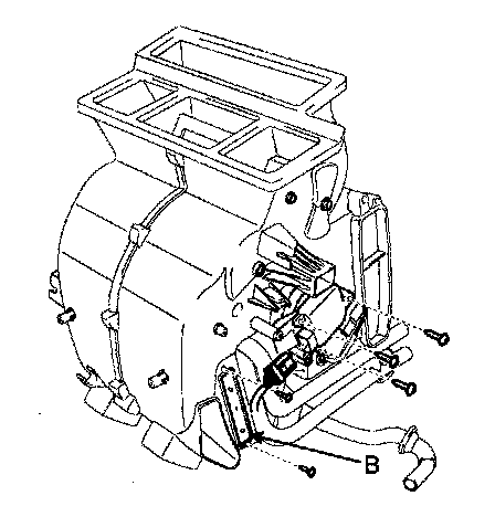 4. Remove the bolts (A) and the expansion valve (B) from the evaporator core.