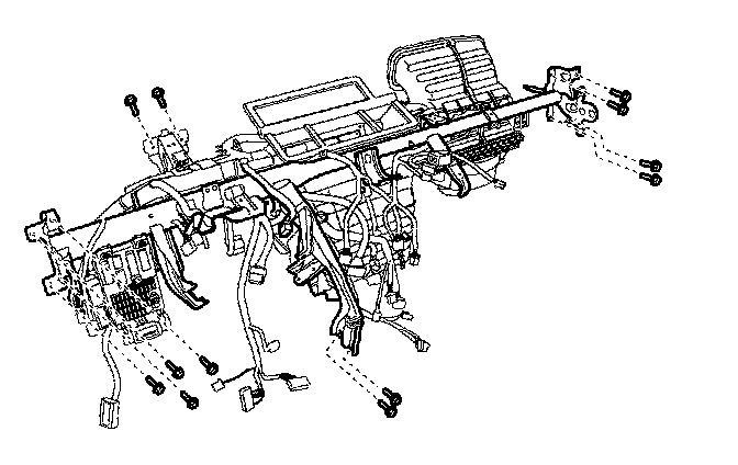 10. Unscrew 12 bolts and then remove the cowl cross bar and heater & blower unit assembly simultaneously.
