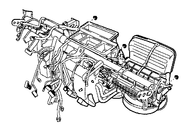 11. Disconnect the heater and blower unit from the cowl cross bar assembly.