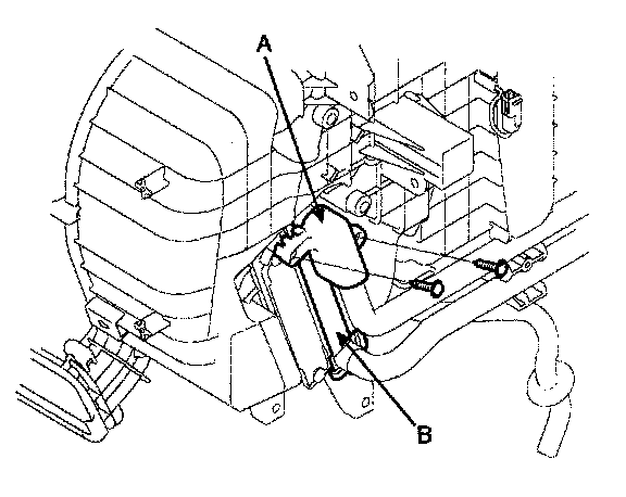 5. Disconnect the inlet (A) and outlet (B) heater hoses from the heater unit.