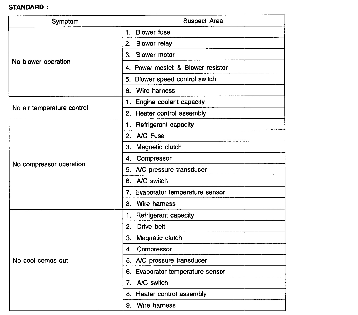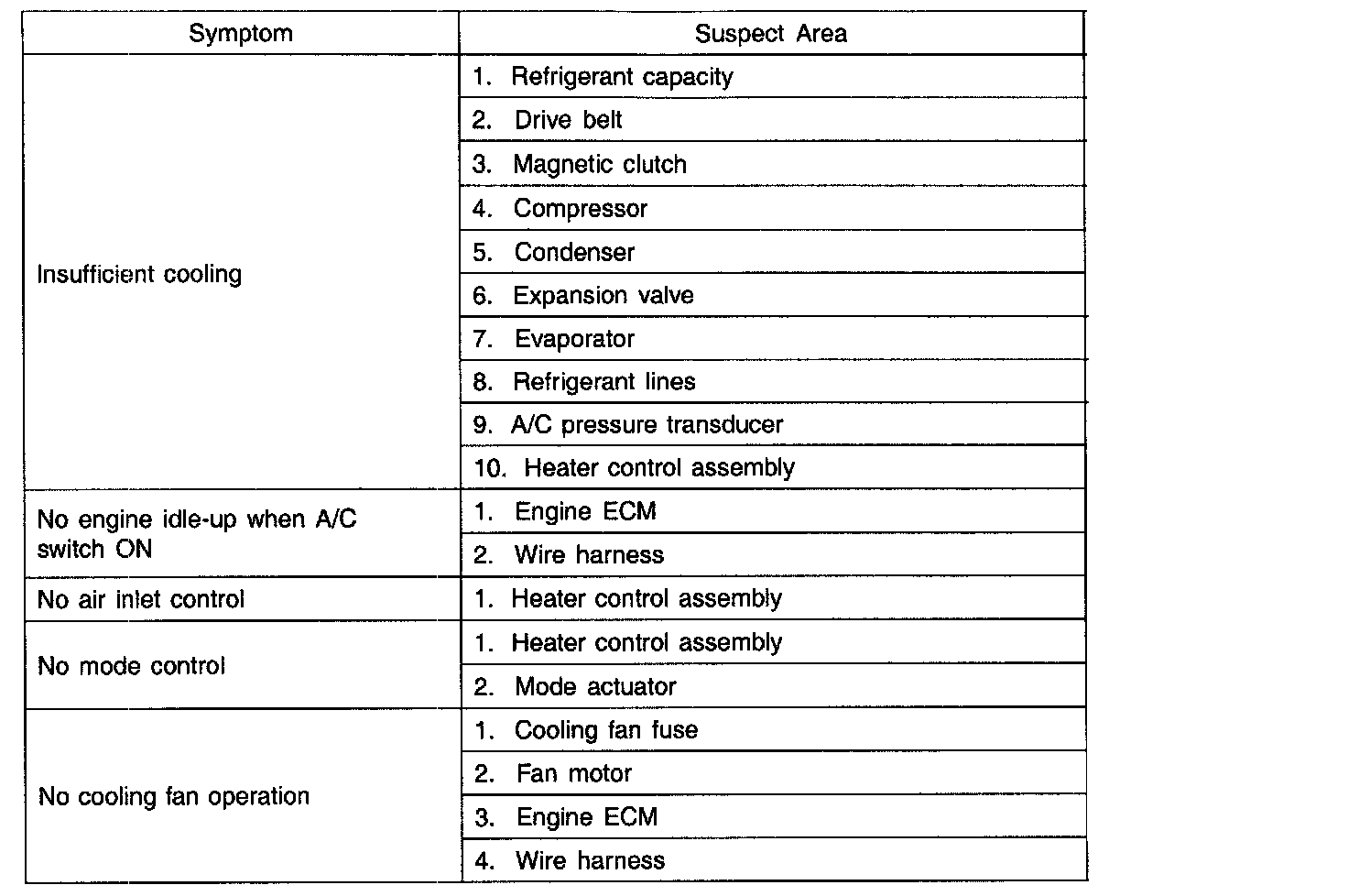 TROUBLESHOOTINGPROBLEM SYMPTOMS TABLE