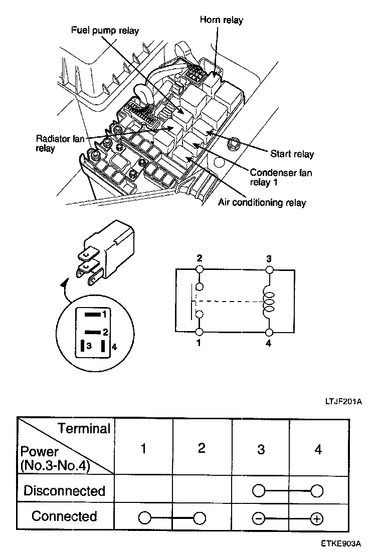 2. There should be continuity between the No.1 and No.4 terminals when power is disconnected.