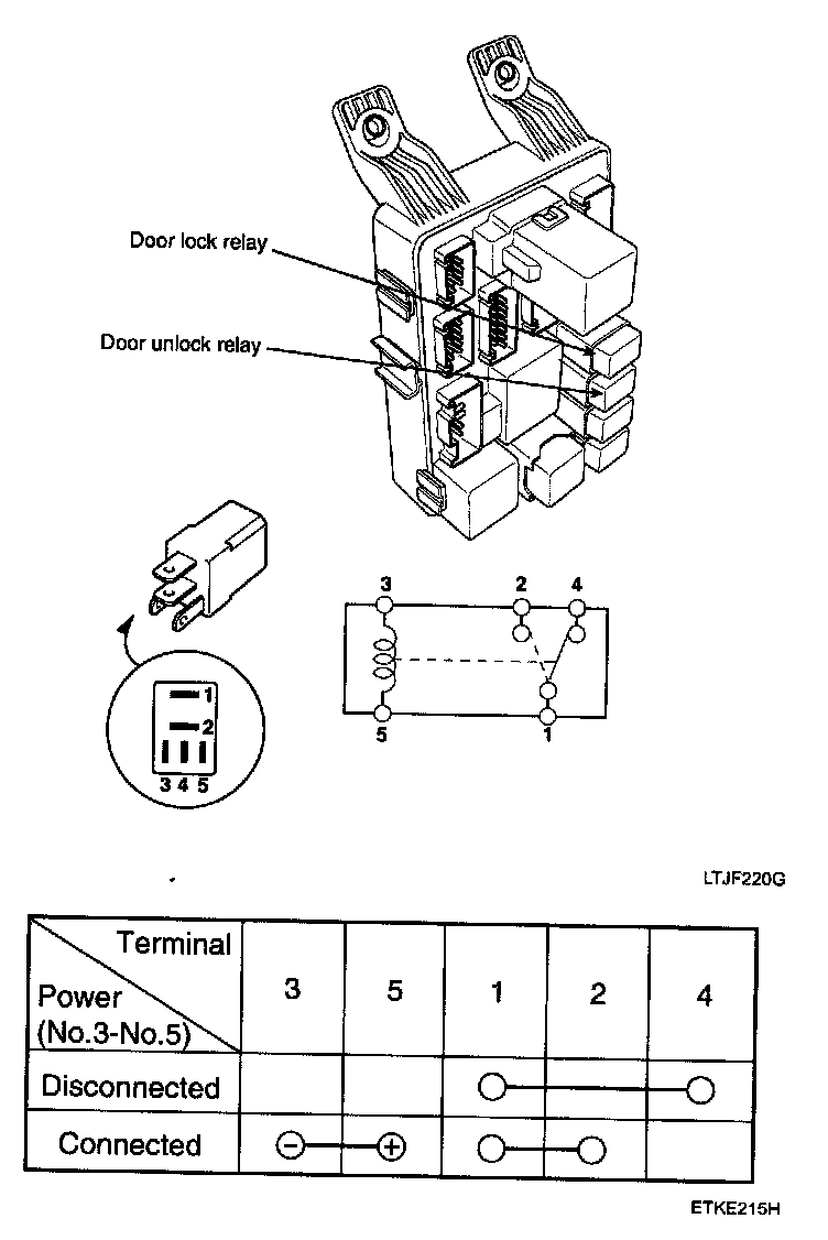 1. There should be continuity between the No.1 and No.2 terminals when power and ground are connected to the No.3 and No.5 terminals.