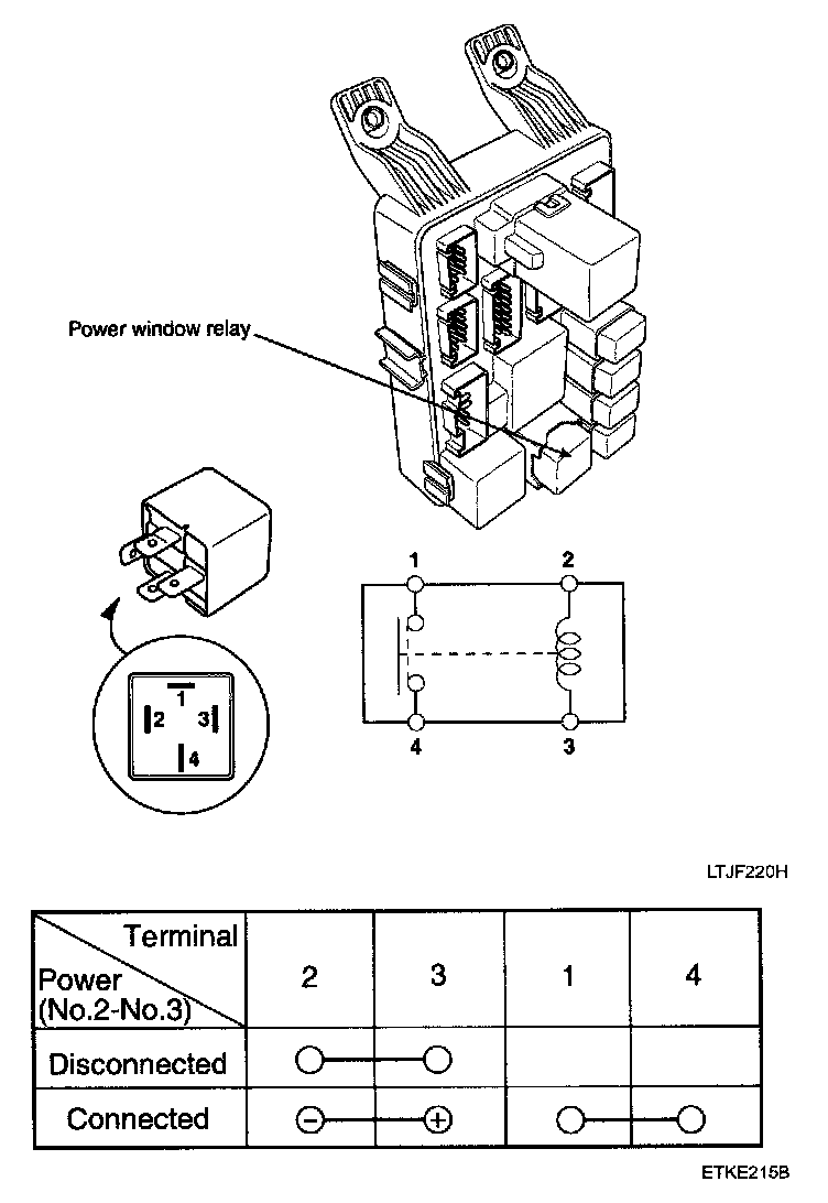 1. There should be continuity between the No.1 and No.4 terminals when power and ground are connected to the No.2 and No.3 terminals.