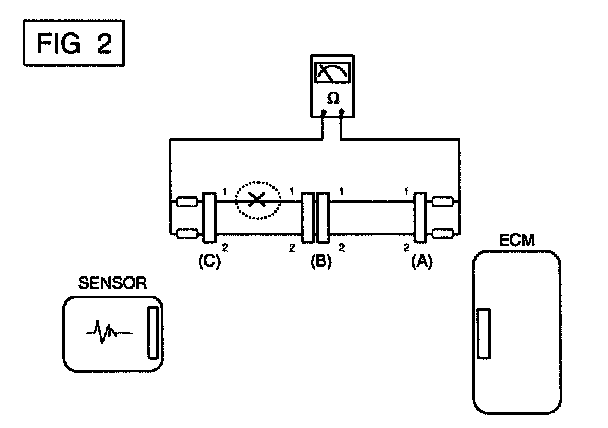 a. Disconnect connectors (A), (C) and measure resistance between connector (A) and (C) as shown in [FIG. 2].
