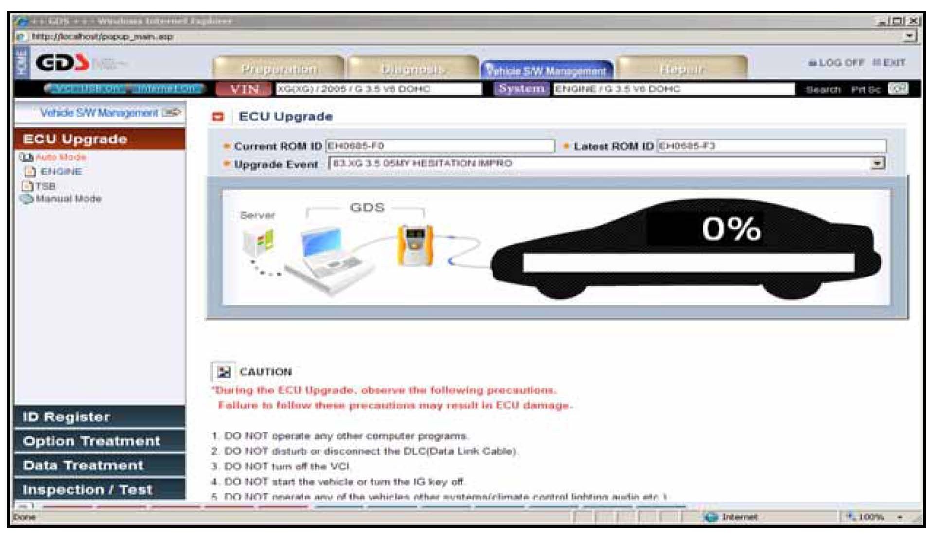 3. Turn on the VCI and GDS laptop, and then perform reprogramming in accordance with the instructions of the below procedure: