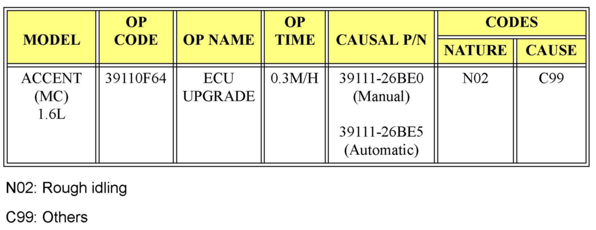 ^ Applicable vehicle production date range: From start of 2007 ACCENT (MC) production to 11/20/06.