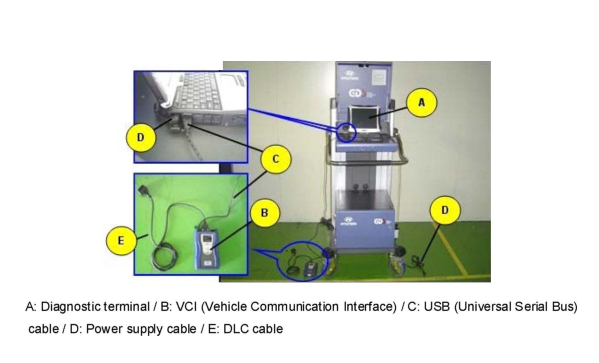 2. Connect the USB cable between the VCI and the diagnostic terminal.