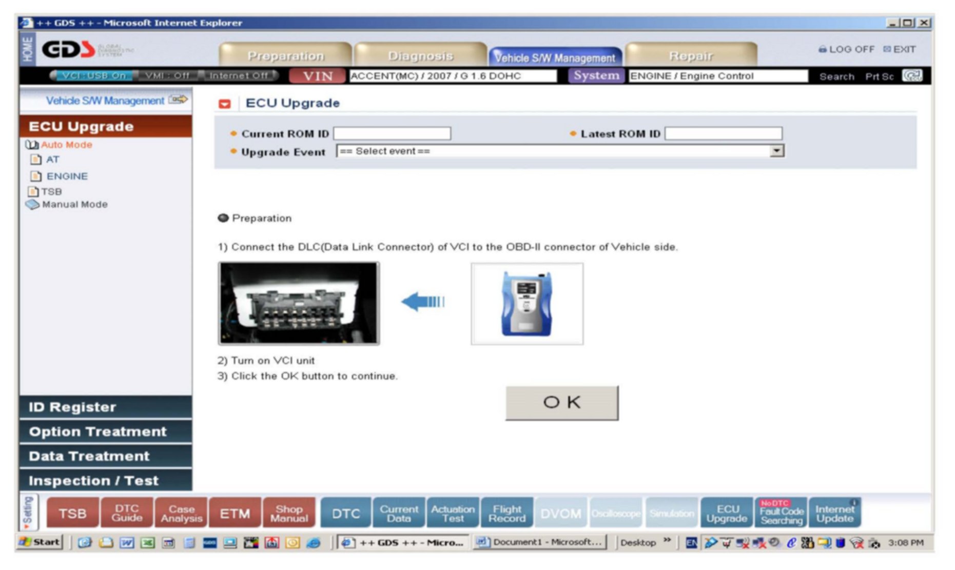 3. Be careful not to disconnect any cables connected to the vehicle or scan tool during update.