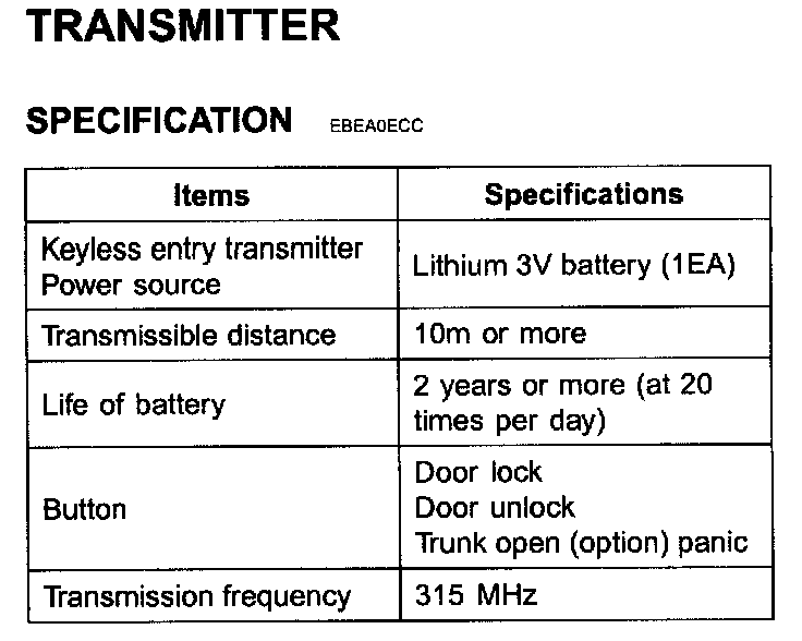 Transmitter - Specification: