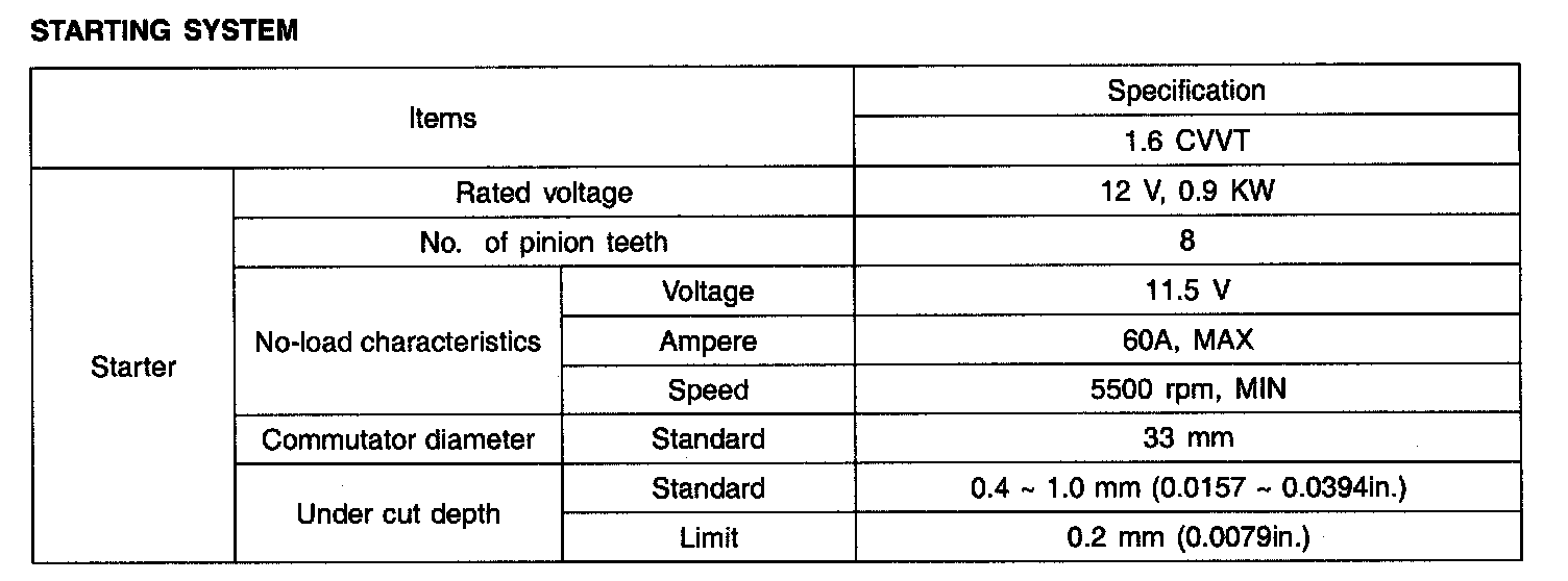 Starting System - Specification:
