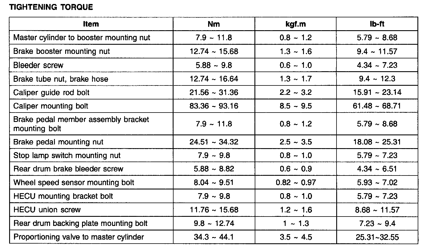 TIGHTENING TORQUE: