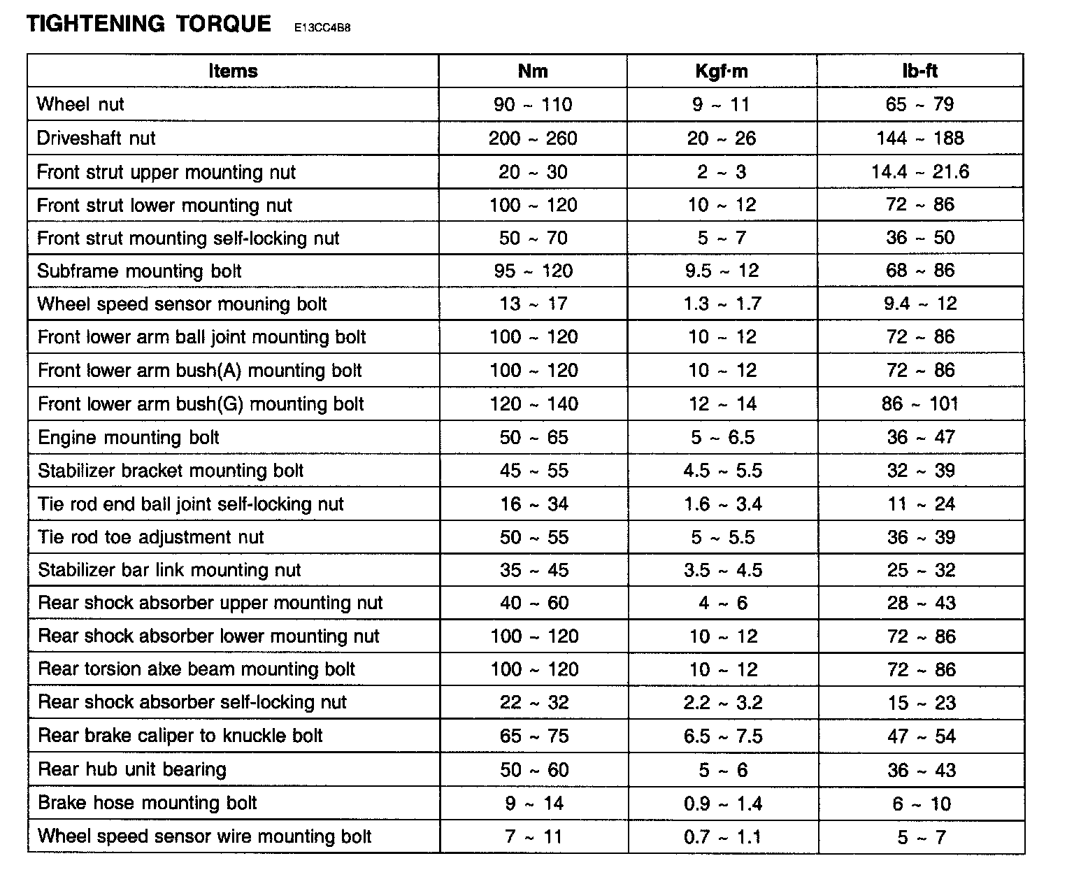 TIGHTENING TORQUE: