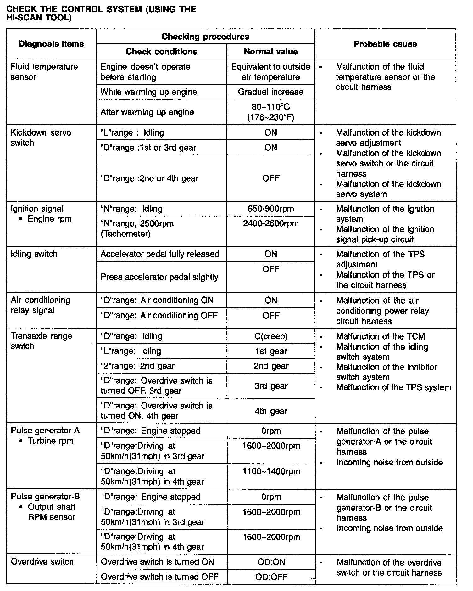 CHECK THE CONTROL SYSTEM (USING THE HISCAN TOOL-part 2):