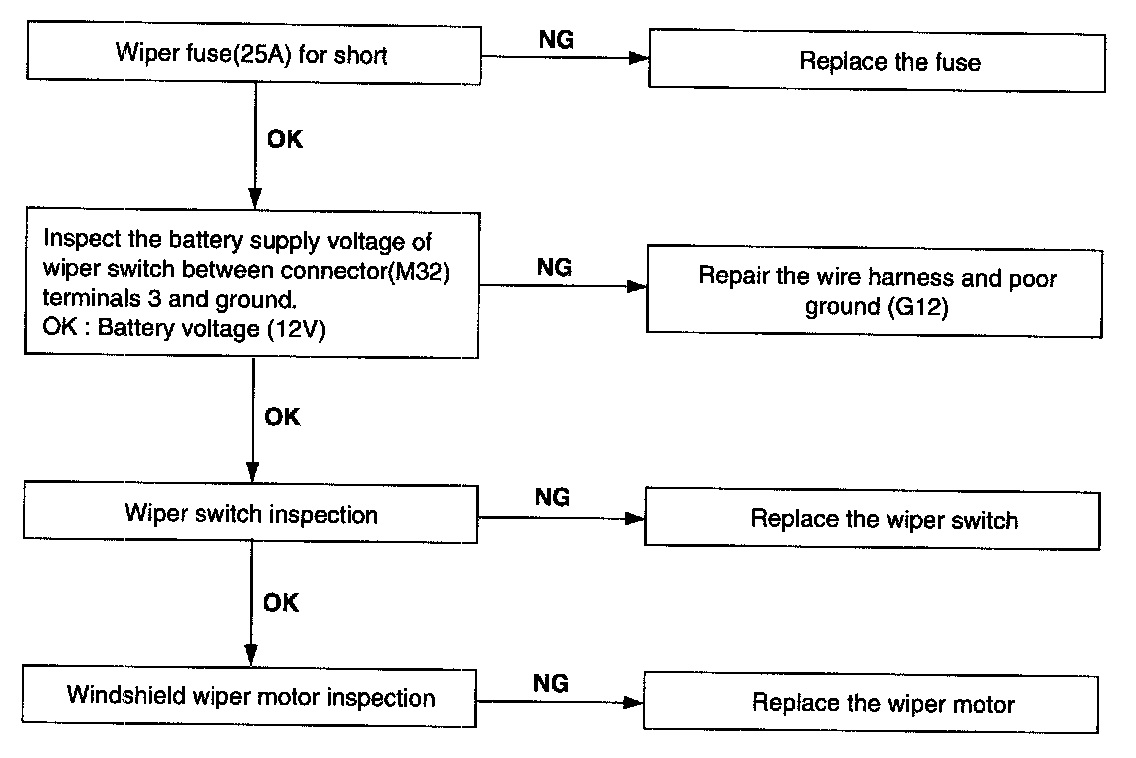 Wiper low and wiper high do not work.