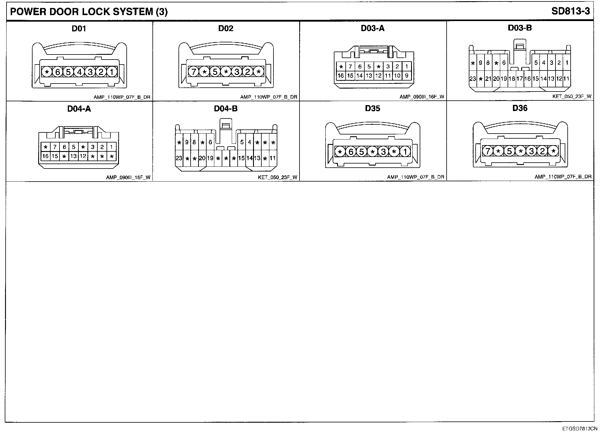 Power Door Lock System Connector Pin Outs:
