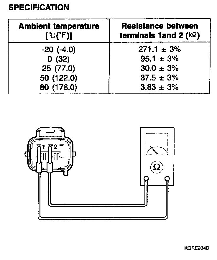 3. Check the resistance of ambient temperature sensor between terminals 1 and 2 whether it is changed by changing of the ambient temperature.