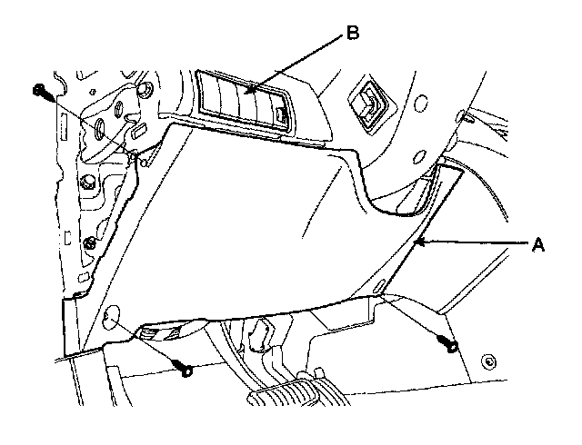 2. Remove the crash pad lower panel (A) and switch (B).