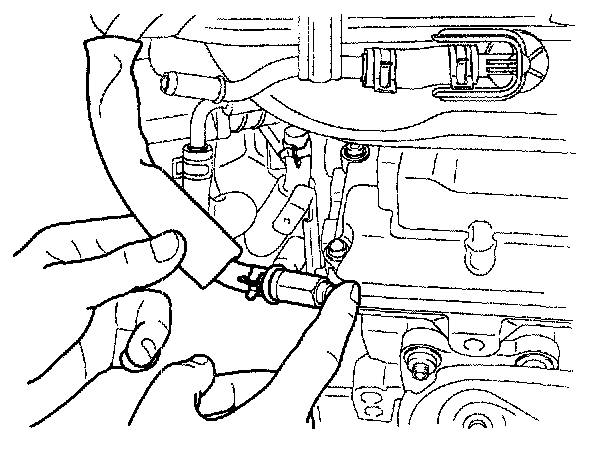 1. Disconnect the ventilation hose from the positive crankcase ventilation (PCV) valve. Remove the PCV valve from the rocker cover and reconnect it to the ventilation hose.
