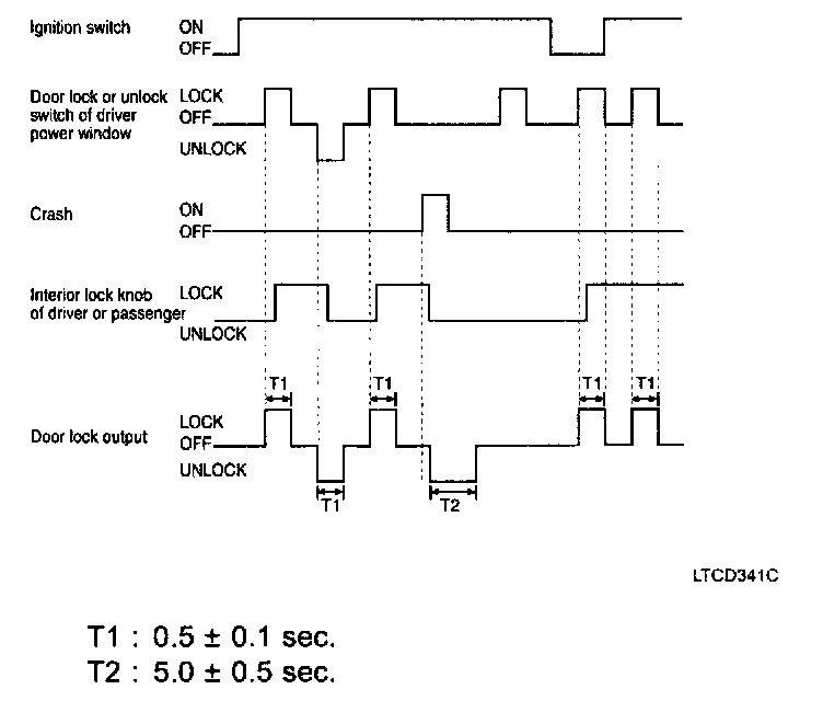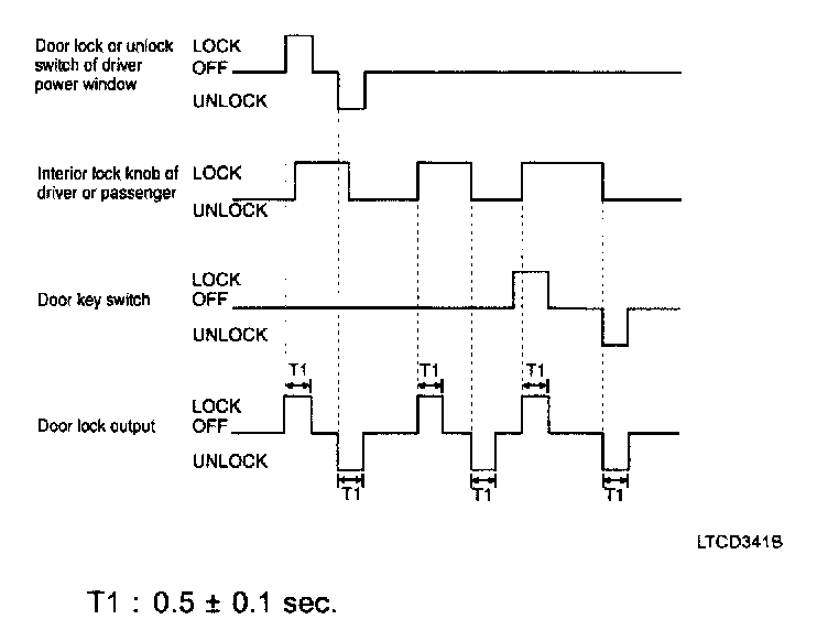 5. If the driver side or passenger side door is locked within 0.5 seconds after driver side or passenger side door is closed, it outputs unlock command for 1 second.