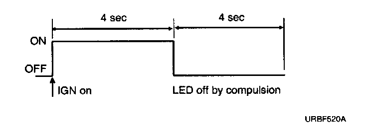 After ignition on, telltale lamp will turn on for 4 seconds and turn off for 4 seconds during the initialization phase and be turned off afterward until receipt of first valid suppression message from OCS system.