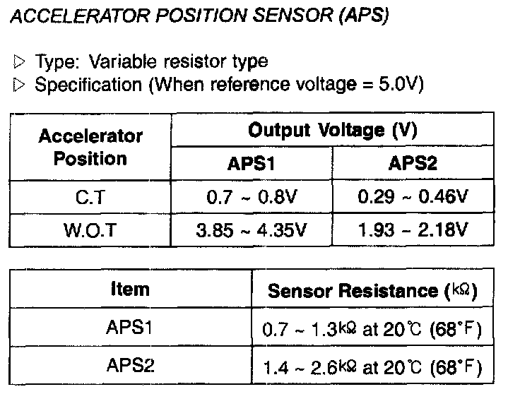 Accelerator Position Sensor (APS) - Specification: