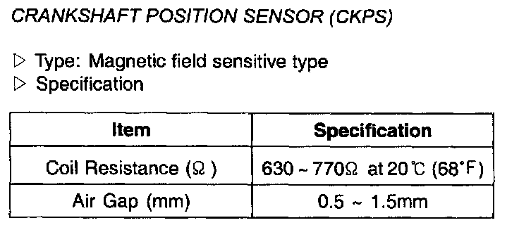 Crankshaft Position Sensor (CKPS) - Specification: