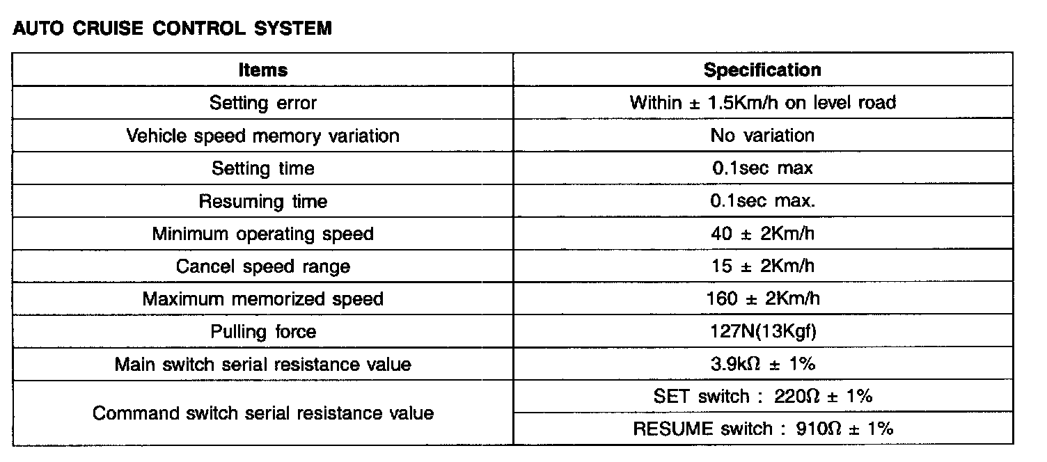 Auto Cruise Control System - Specifications: