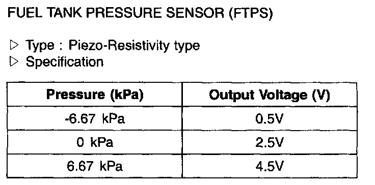 Fuel Tank Pressure Sensor (FTPS) - Specification: