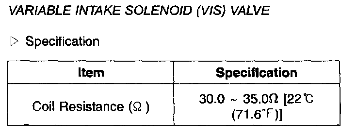 Variable Intake Solenoid (VIS) Valve - Specification: