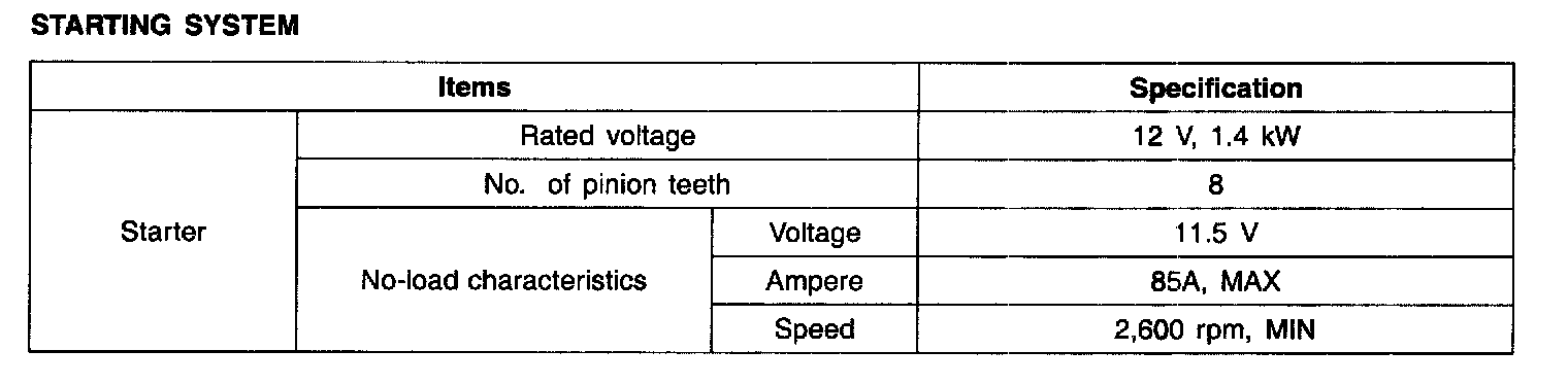 Starting System: Specifications