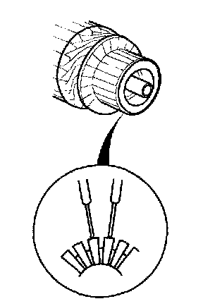 7. Check for continuity between the segments of the commutator. If an open circuit exists between any segments, replace the armature.