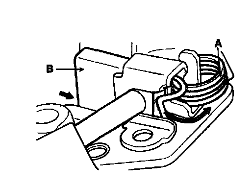 2. Pry back each brush spring (A) with a screwdriver, then position the brush (B) about halfway out of its holder, and release the spring to hold it there.