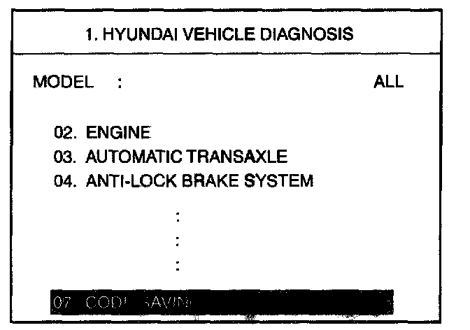 3. After selecting "CODE SAVING" menu, push "ENTER key, then the screen will be shown as above.