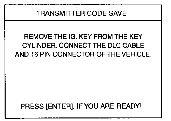 4. After removing the ignition key from key cylinder, push "ENTER key to proceed to the next mode for code saving. Follow steps 1 to 4 and then code saving is completed.