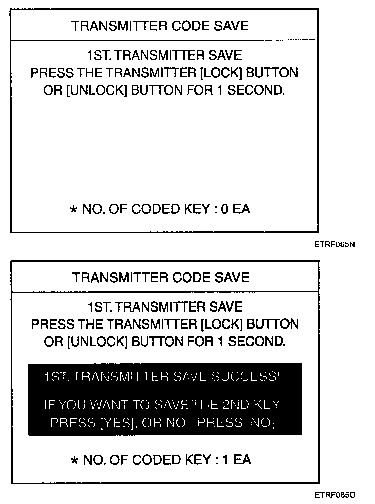 4. If the doors lock and unlock, the transmitter is O.K, but if the doors don't lock and unlock, register the transmitter code, then try to lock and unlock the doors.