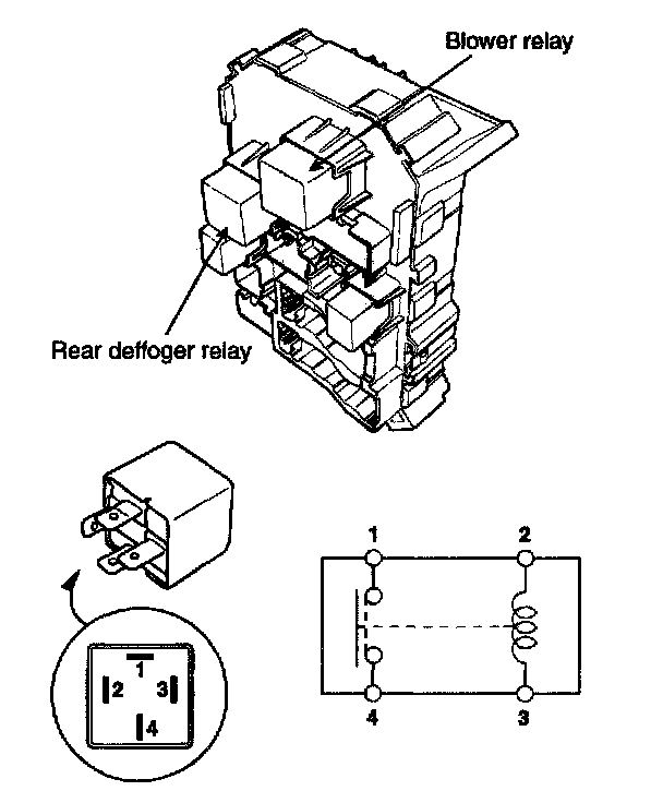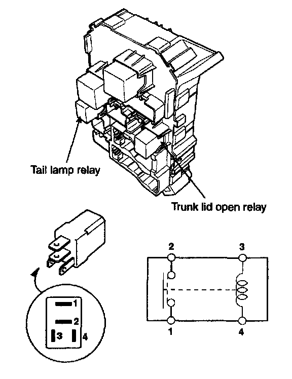 1. There should be continuity between the No. 1 and No. 4 terminals when power and ground are connected to the No. 2 and No. 3 terminals.