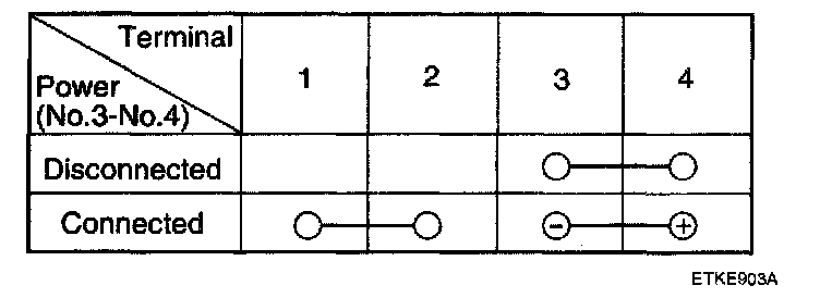 1. There should be continuity between the No. 1 and No. 2 terminals when power and ground are connected to the No. 3 and No. 4 terminals.