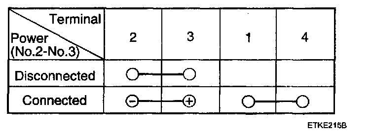 2. There should be no continuity between the No. 1 and No. 4 terminals when power is disconnected.