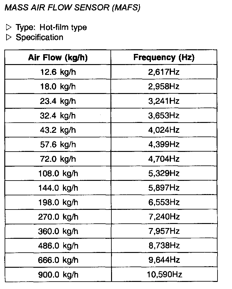 Mass Air Flow Sensor(MAFS) - Specification: