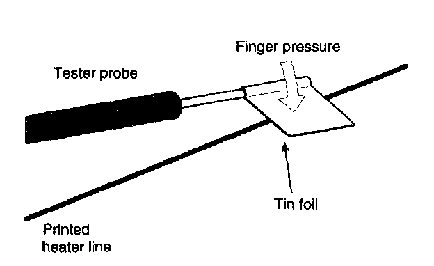 CAUTION: Wrap tin foil around the end of the voltmeter test lead to prevent damaging the heater line. Apply finger pressure on the tin foil, moving the tin foil along the grid line to check for open circuits.